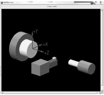 (3)單擊“Creat New Post Processor”對話框中的“OK”按鈕,進入用戶編輯界面,在“Mchine Tool”屬性頁的左面結構窗口中設置和FANUC數控系統相關的參數。設置完成后,點擊“Display Machine Tool”按鈕,系統顯示2-Axis Lathe數控車床簡圖,如圖3所示。