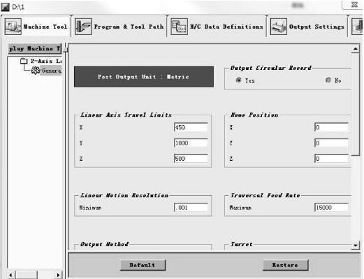 (4)機床參數設置。床自身的數據輸入機床參數,如各軸的極限行程、最大進給速率等,如圖4所示。