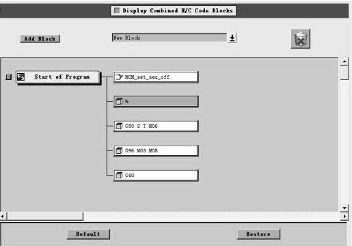 (5)程序和刀軌參數設置。定義程序開始程序段:此處定義數控車程序開頭部分需要書寫的程序段。在 start of program 程序塊里輸入G40(取消刀具補償),否則會造成一定的安全隱患,M06實現自動換刀功能,創建過程如圖5所示。