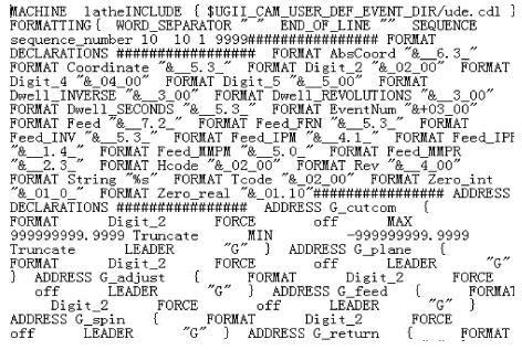 (9)保存退出,在保存文件夾目錄下生成FANUC_0i _D_post.cdl,FANUC_ 0i _D.pui,FANUC_0i _D.tcl3個文件源代碼,圖9所示為生成的部分后置處理源代碼。